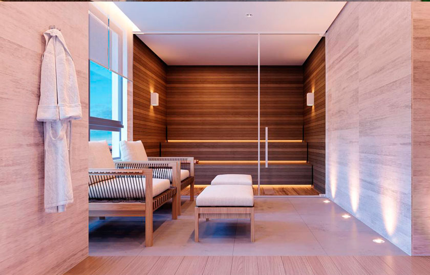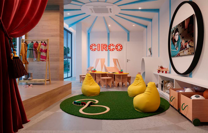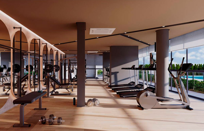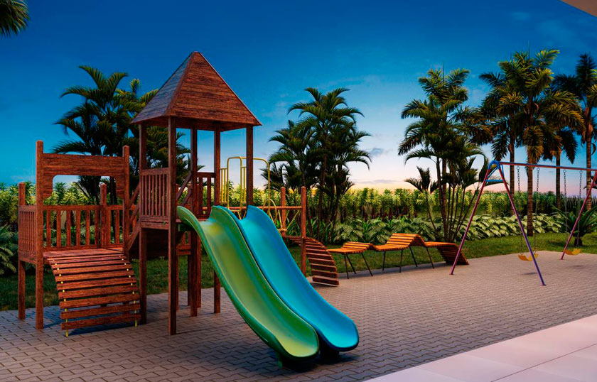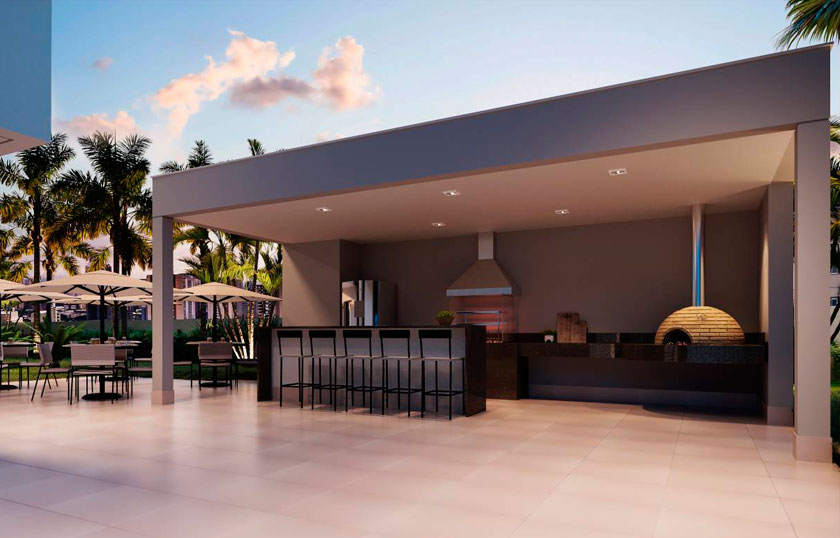 Bicicletário, Brinquedoteca, Churrasqueira com forno de pizza, Espaço funcional, Espaço goumert, Fitness interno e externo, Playground, Piscina, Praça, Salão de Festas, São de Jogos, Sauna e descanso