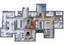 2o pavimento 2 por andar, 3o ao 21o pavimento 4 apartamentos por andar