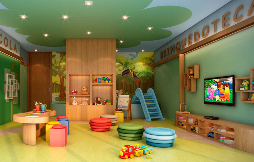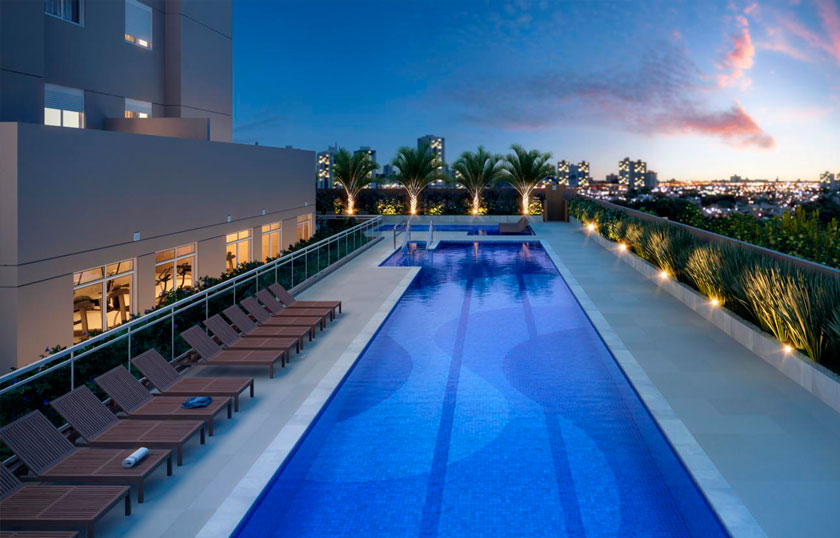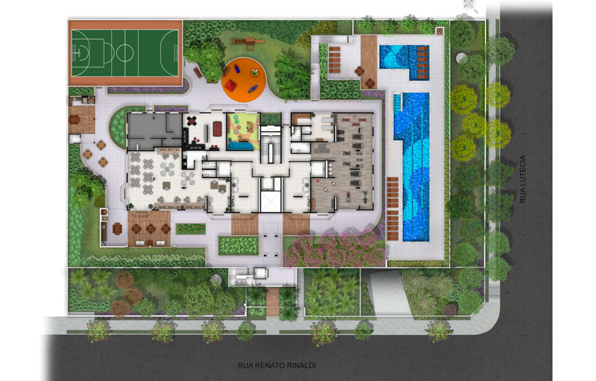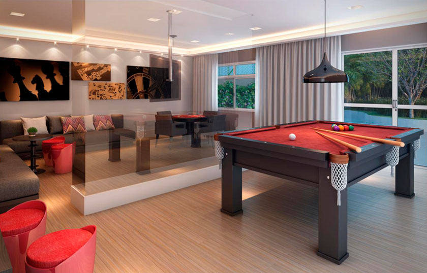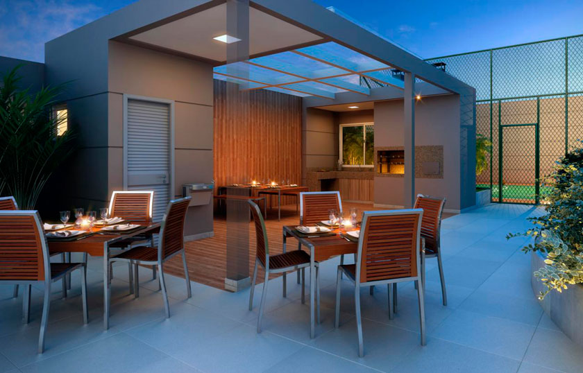 Salão de Festas, Churrasqueira e forno de pizza, Salão de Jogos, Brinquedoteca, Fitness, Sauna, Piscina adulto, Solarium, Deck Molhado, Piscina infantil, Playground, Quadra recreativa, Pet Place, Bicicletário