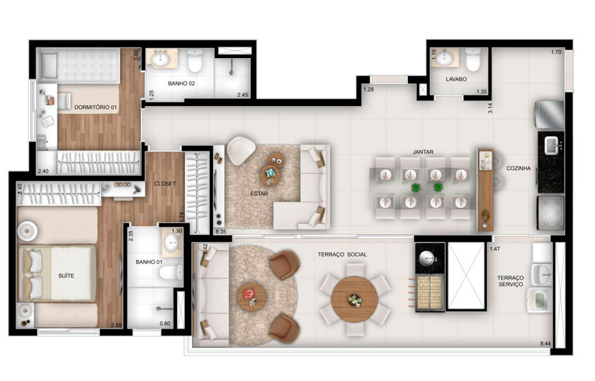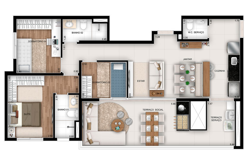 3 dormitórios, 90m²