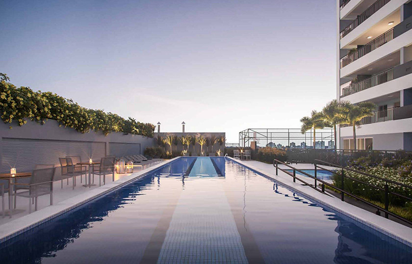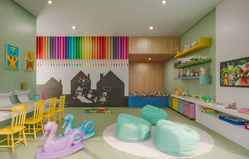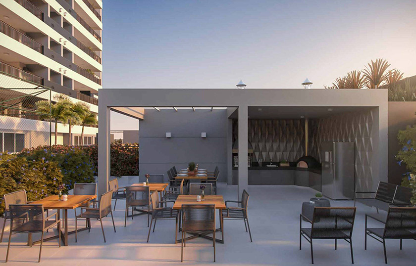Salão de festas, Apoio para festas, Churrasqueira com forno de pizza, Playground, Brinquedoteca, Sauna com ducha, Descanso da sauna, Salão de jogos, Fitness, Fitness externo, Quadra recreativa, Solarium , Piscina adulto, Piscina infantil, Bicicletário, Pet place